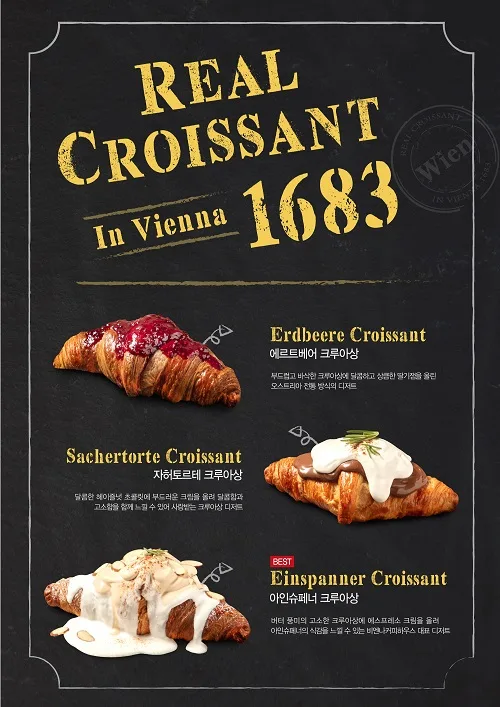 비엔나 크루아상 3종으로는 비엔나커피의 커피로 만든 크림과 바삭한 크루아상이 한입 가득 행복한 경험을 제공하는 아인슈패너 크루아상, 다크한 초코 크림과 새하얀 크림의 조합으로 진한 달콤함을 맛보고 싶다면 자허트로테 크루아상, 깊은 풍미의 크루아상과 상큼, 달콤함의 라즈베리가 절묘한 조화를 이루는 에르트베어 크루아상이 있다.
