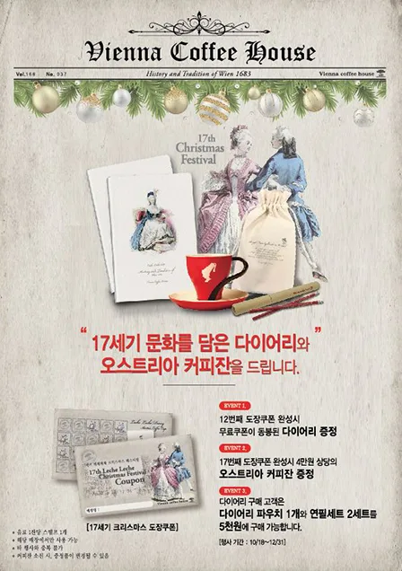 17세기 문화를 담은 다이어리와 오스트리아 커피잔을 드립니다 !