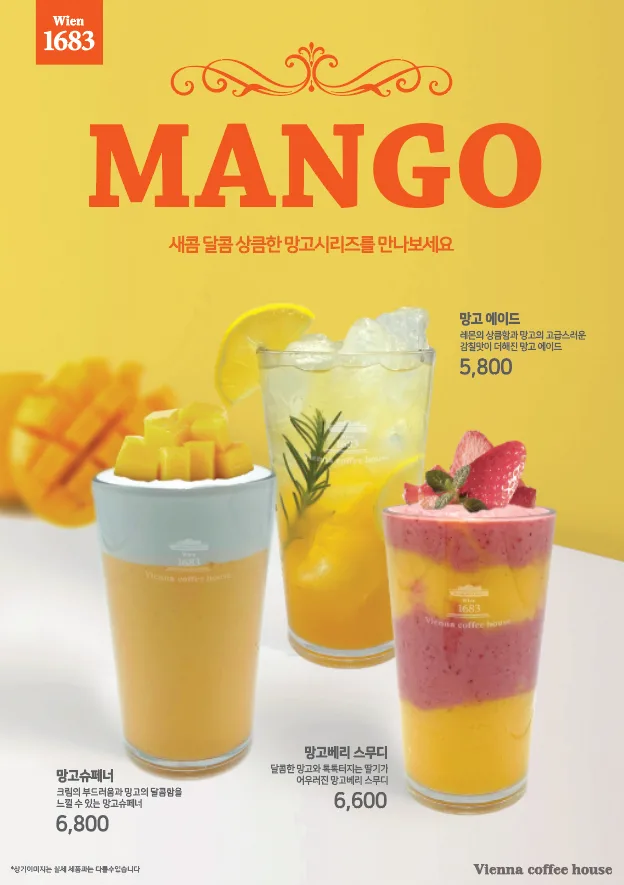 가까운 비엔나커피하우스에서 망고 시리즈 음료를 만나보세요~