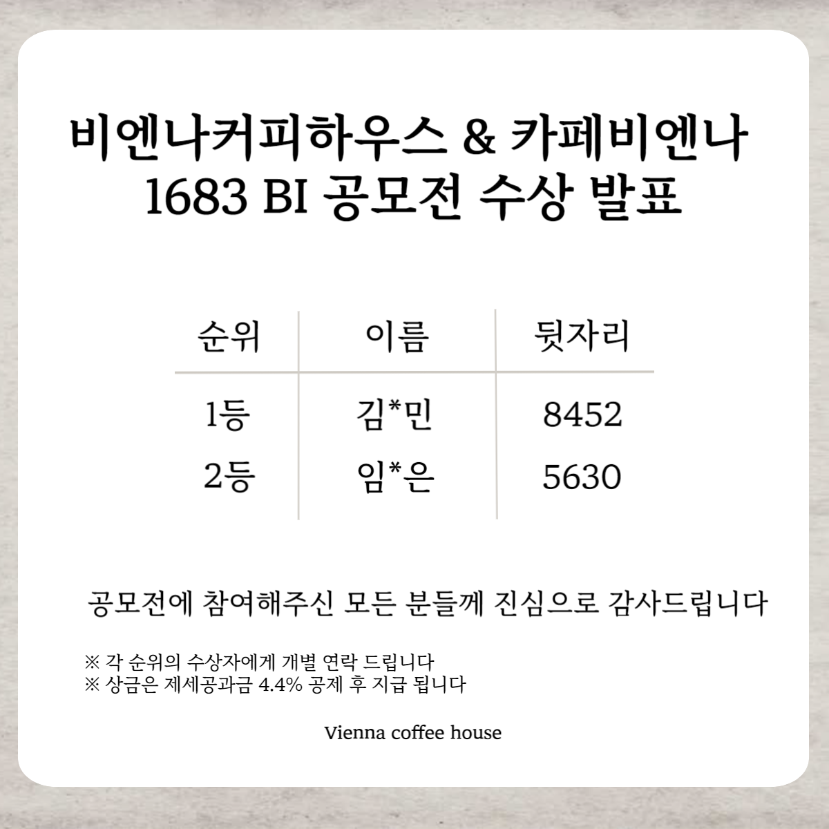 비엔나커피하우스 & 카페비엔나 1683 로고 디자인 공모전 수상자 발표