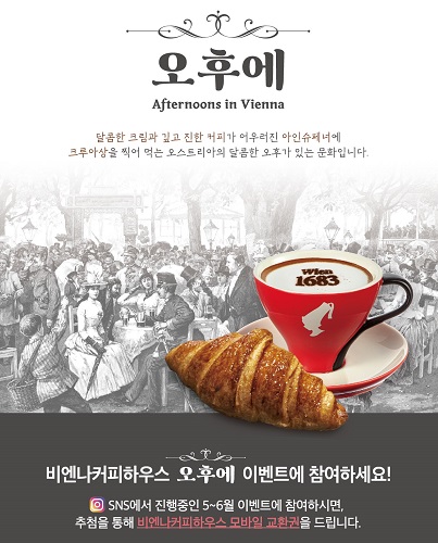 유러피언 프리미엄 카페브랜드 비엔나커피하우스가 5월 가정의달을 맞아 ‘오후에’ 인스타그램 이벤트를 오늘(18일)부터 24일까지 진행한다고 밝혔다.