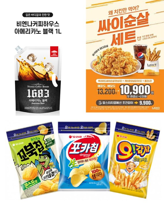 오리온의 '꼬북칩', '포카칩', '오!감자' 등 인기 스낵 3종 세트도 대용량 지퍼백에 담겨 판매된다. 이 세 제품은 기존 M 사이즈 대비 세 배 이상 용량을 늘렸다. '꼬북칩'과 '오!감자'는 가성비 트렌드를 반영해 기존 제품 대비 g당 가격을 낮춰 실속도를 높였다.